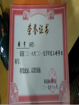 校三好学生,获得开云在线开户第十一届数学竞赛二等奖,机械与电气工程学院合唱比赛团体第一名的荣誉。