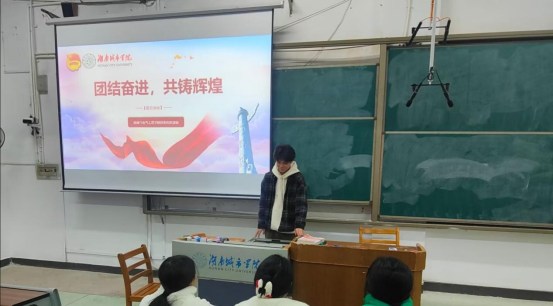 2311104班团支书钟佳毅为同学们讲解了习近平总书记在全国民族团结进步表彰大会上的重要讲话,通过“五个不同”和“三个离不开”的教育深入学习国家的民族政策,更加深刻地认识到民族的多样性和各民族之间紧密相连的关系。只有铸牢中华民族共同体意识才能维护好民族团结、社会稳定和国家统一,才能实现民族地区的高质量、跨越式发展,实现好、维护好、发展好各民族根本利益。随后,在团支书的组织下,开展了“民族文化知多少”的知识问答环节。同学们积极参与,通过举手抢答不同的问题,在为自己得到分数的基础上,加深对我国民族政策和文化,特别是对人民币背面的少数民族文字、不同民族的传统节日和服饰等的了解与认识,让本班同学对民族文化有了更直观的感受。各民族应在理想上、信念上、情感上、文化上团结统一,手足相亲、守望相助,形成协作奋进、积极昂扬的精神。本次主题团日活动让同学们清楚明白团结各民族才能实现民族地区的高质量、跨越式发展,才能使中华民族更加辉煌。本次团日活动还丰富了团员们的课余生活激发了团员们的团结互助精神,增强了集体凝聚力。