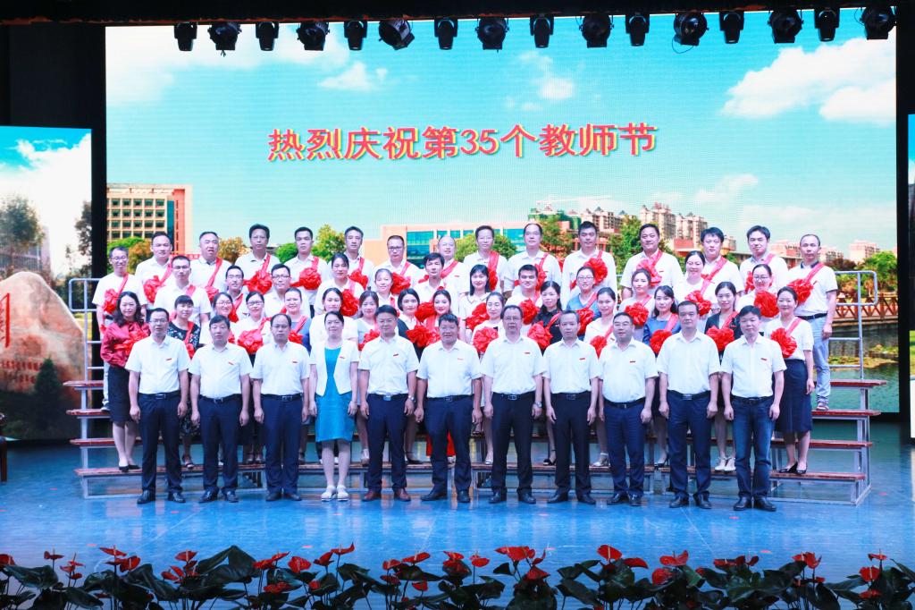 2019年9月7日上午,在第35个教师节到来之际,我校在学校音乐厅召开庆祝第35个教师节表彰大会。全体校领导,各职能部门、二级学院负责人及教师代表400余人参加会议。党委书记罗成翼在会上发表讲话,会议由校长李建奇主持。