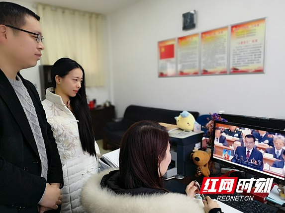 开云在线开户老师在办公室收看全国两会实况。