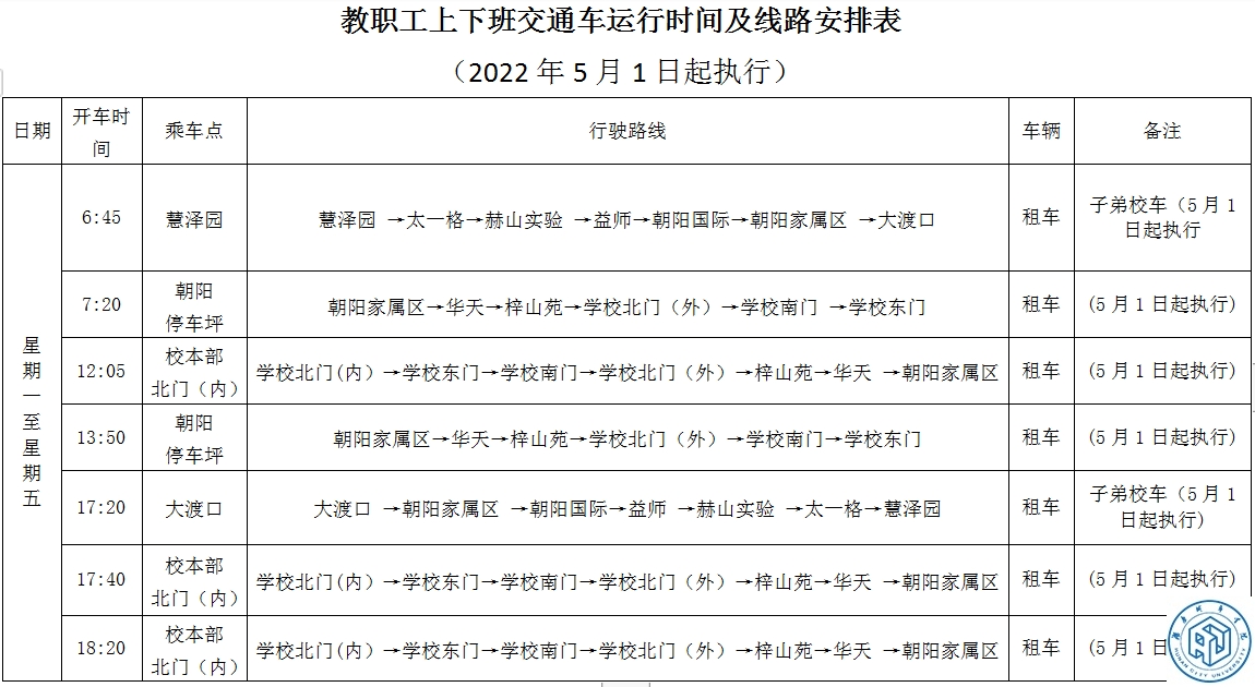 2.教职工上下班乘车时间表