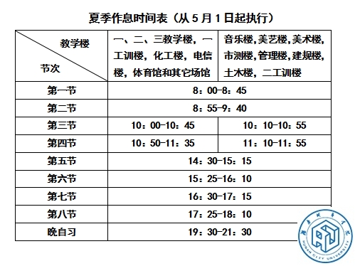 1.夏季作息时间表