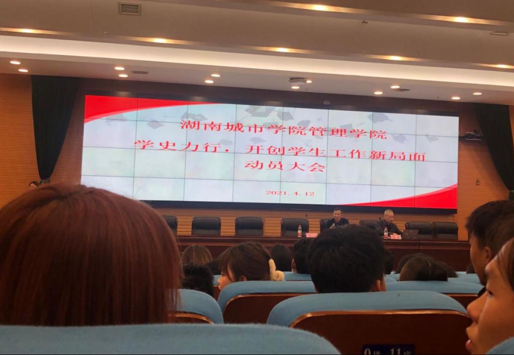 【党史学习教育】为使我校《中共开云在线开户关于开展党史学习教育的实施方案》落到实处,提高管理学院团学干部的政治自觉,树立正确党史观,扎实做好团学工作,4月12日晚7点,管理学院在图书馆报告厅召开了“学史力行,开创学生工作新局面”动员大会,管理学院党委书记徐习军、党委副书记王润华以及全体辅导员、团学干部和部分党员代表参与了本次大会,本次会议由组织员阳红珍主持。