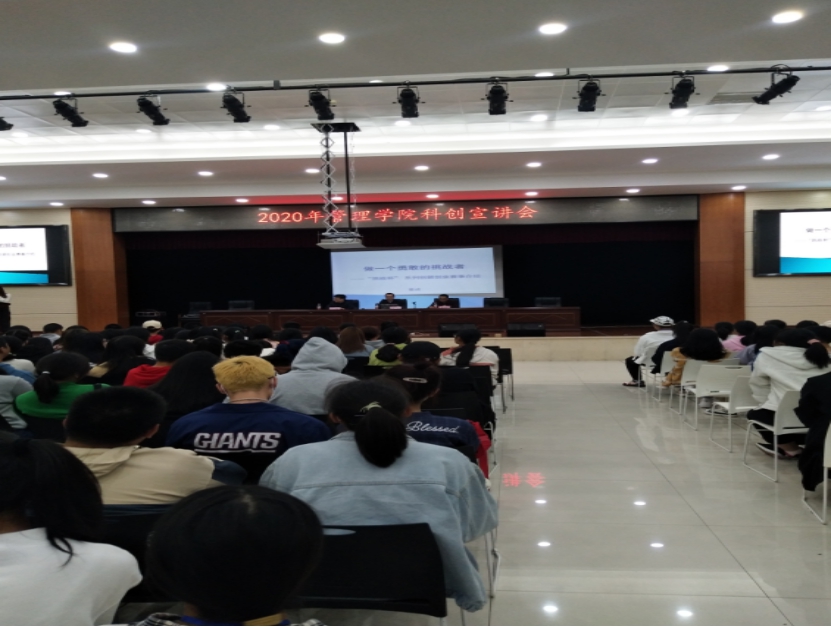 为努力营造我院大学生创新创业氛围,增加大学生创新创业意识,10月21日晚八点管理学院科创宣讲会在大学生活动中心召开。本次宣讲会由学生科创部部长刘奕枫主持,参加本次宣讲会的人员有管理学院董成老师、任国平老师、陈海波老师、学生科创部人员以及大一全体学生。