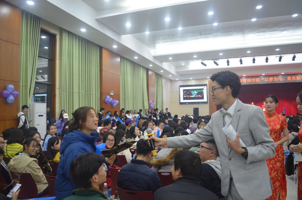 表演正式开始。乐队表演振奋人心,一首《喜欢你》点燃现场氛围;舞台剧《成长的路途》生动地表现出一个人的成长历程;抽奖环节同学们积极参与,惊喜连连;大一副班带来的情景剧《管院达人秀》歌舞结合,展现出各位副班的满满活力,将全场气氛带入高潮;舞蹈《泰山干嘛》压轴出场,全体院干大合唱为本次迎新晚会画上一个句号。