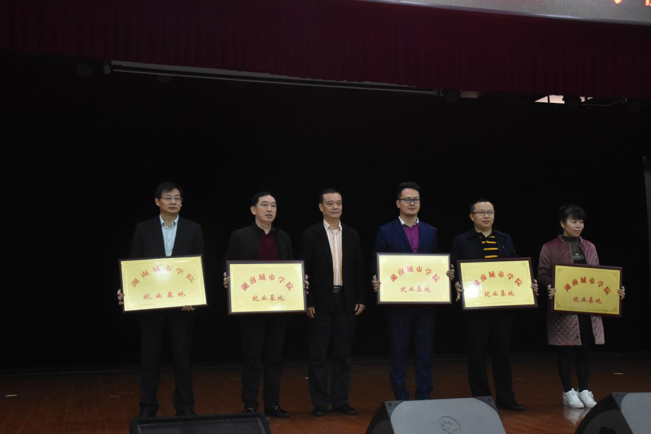 招聘会由开云在线开户招生就业处处长李梦醒主持。会议伊始,开云在线开户党委委员、副校长雷存喜致欢迎词,对来自广东省大湾区益商的用人单位表示诚挚欢迎。接着,广东省湖南益阳商会执行会长胡剑毅在讲话中表示,大湾区将全力支持与开云在线开户开展额深度校企合作,共同育人,培养更多的高技能人才。最后,雷存喜教授为广东省湖南益阳商会、深圳市益阳商会、珠海市湖南益阳商会、东莞市湖南益阳商会、中山市湖南益阳商会授予“开云在线开户就业基地”牌匾。