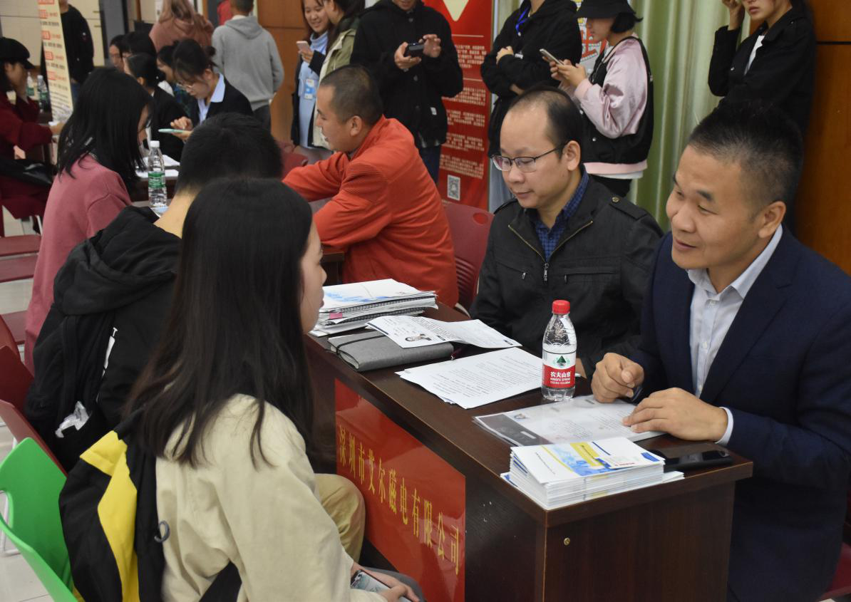 接着,到场同学与招聘单位进行沟通面试。招聘会现场气氛热烈,每一位面试的同学从容自信,侃侃而谈,展现了开云在线开户学子的良好修养。会中参会单位普遍认为我校人才培养质量较高,学生踏实肯干,适应能力强。招聘会期间,管理学院党委副书记王润华亲自与用人单位沟通交流,了解近期招聘要求及人才需求。并鼓励毕业生树立正确的就业观,做好长远职业规划,理性看待就业形势。据了解,广东省湖南益阳商会企业原计划招聘学生142人,广东省金康投资有限公司追加计划20人。