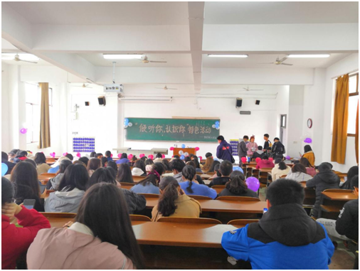 活动由我院团学会心理部干事陈雅琪和夏运剑担任主持人,全院各班级代表参加了本次活动。在主持人的引导下本次特色活动准时开始。