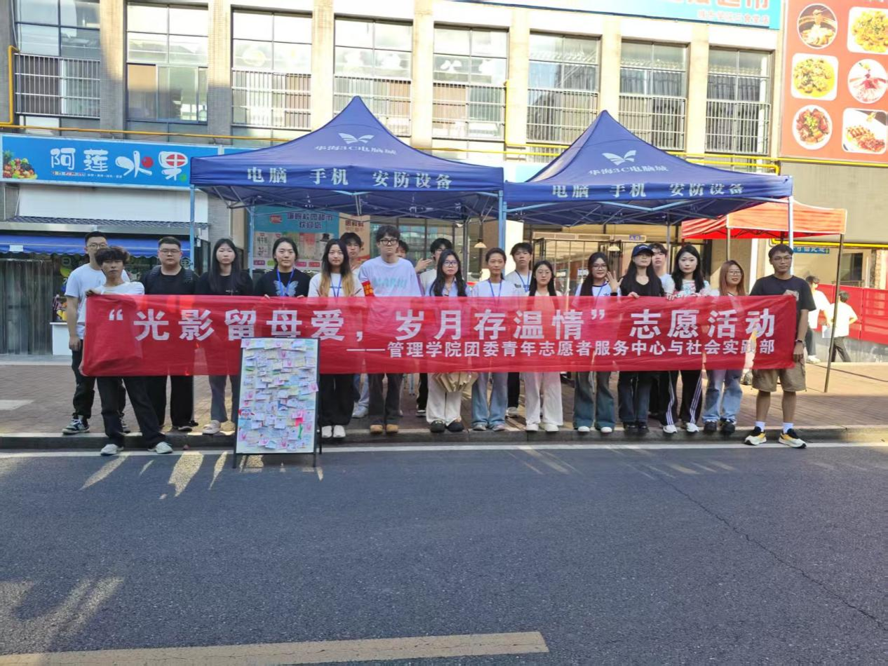 (通讯员 李钰 雷明浩)光韵勾描母影,岁痕蕴蓄情长。为弘扬孝亲美德,传承感恩文化,管理学院于2025年5月10日至2025年5月11日在新食堂西侧举办“光影留母爱,岁月存温情”主题活动。此次活动由管理学院团委青年志愿者服务中心与社会实践部组织,管理学院志愿者参与。