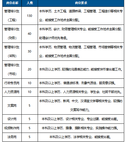 管理培训生的招聘由太平洋建设总部人才中心组织实施,结合集团的发展战略及各集团实际用人需求确定招聘数量,每年从专业排名全国前列的高校筛选出符合集团“五化建设”人才标准的应届本科毕业生,经入职培训后,分配至项目一线从事基层工作。通过不断地考核和轮岗培训,让他们经受理论加实践的磨炼后,成为集团技术管理层的中坚力量。