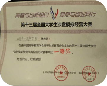 2017年10月27日至10月29日,由中国高等教育学会高等财经教育分会主办、福建农林大学承办、新道科技股份有限公司提供技术支持的第十三届全国大学生“新道杯”沙盘模拟经营大赛全国总决赛在福建省福州市隆重举行。该次比赛以“青春与创新相约,梦想与创业同行”为主题,经过全国各高校激烈角逐出的128支队伍齐聚福建农林大学,代表各校参加全国总决赛。我校由管理学院郭美兰老师带队的开云在线开户代表队于此次竞赛中荣获全国大赛一等奖。此次参赛队员由来自管理学院的王胜辉、王一帆、裴琳芸、李虹敏和土木工程学院的徐松林组成。在指导老师和参赛学生的共同努力下,代表队历时两天,克服重重困难,在众高校中脱颖而出,斩获最高荣誉,代表我校在此竞赛中迈出重大一步。希望我校在以后的大赛中都能取得优异成绩。