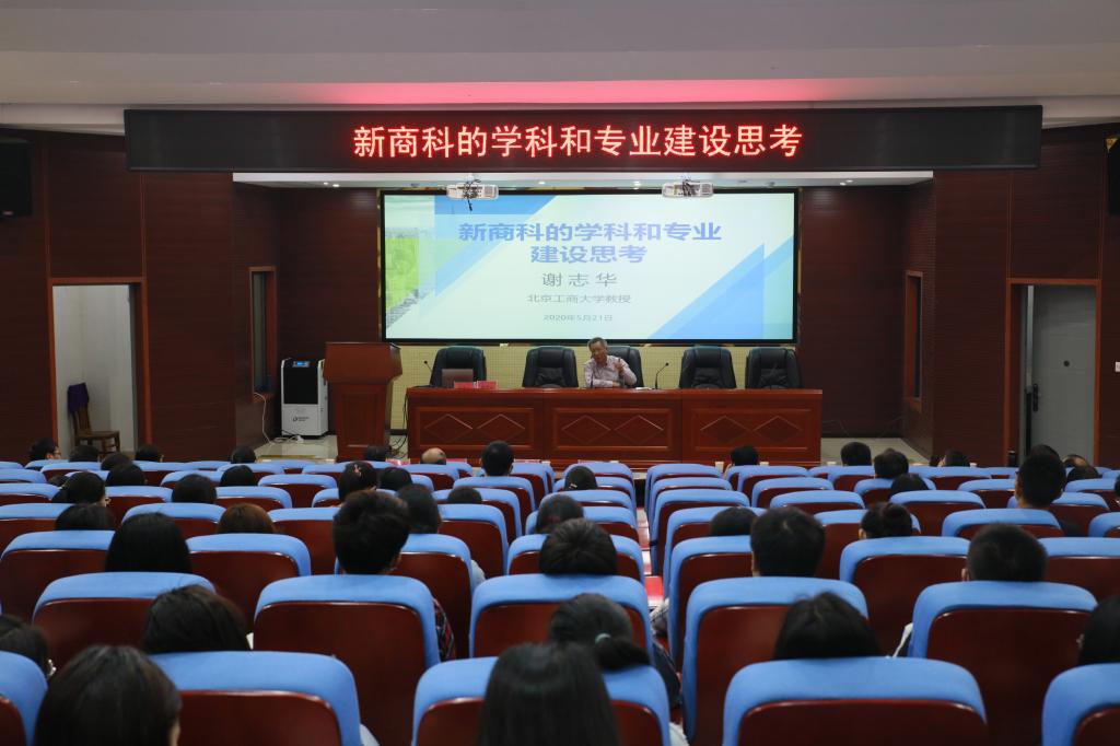 5月21日,北京工商大学谢志华教授应邀到访我校,在建规楼121为我校师生带来题为《新商科的学科和专业建设思考》的学术讲座。校党委书记罗成翼教授、副校长何振教授、教务处、科研处、学科处等职能部门处长、学校人文社科学院院领导及教师学生代表等百余人到场听取了讲座。讲座由党委书记罗成翼教授主持。