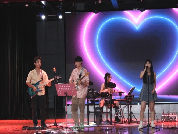 一首由学生乐队“脆皮五花肉”带来的歌曲《第一天》拉开了晚会帷幕。闪烁的镁光灯、充满节奏的鼓点,精彩纷呈的节目接踵而至。《attention&o.o》《桐言》《骁》《哇哩哩被子舞》《The times》《shooting star》等节目或活泼热辣,或唯美灵动,将青年人的蓬勃热情展现得淋漓尽致,现场观众或兴奋欢呼,或挥手配合,气氛愉悦轻松。财务管理教研室老师们深情演唱的歌曲《和你一样》、《祝你一路顺风》表达了其对2023年毕业生最诚挚的祝愿,也展现出浓浓的师生情谊。