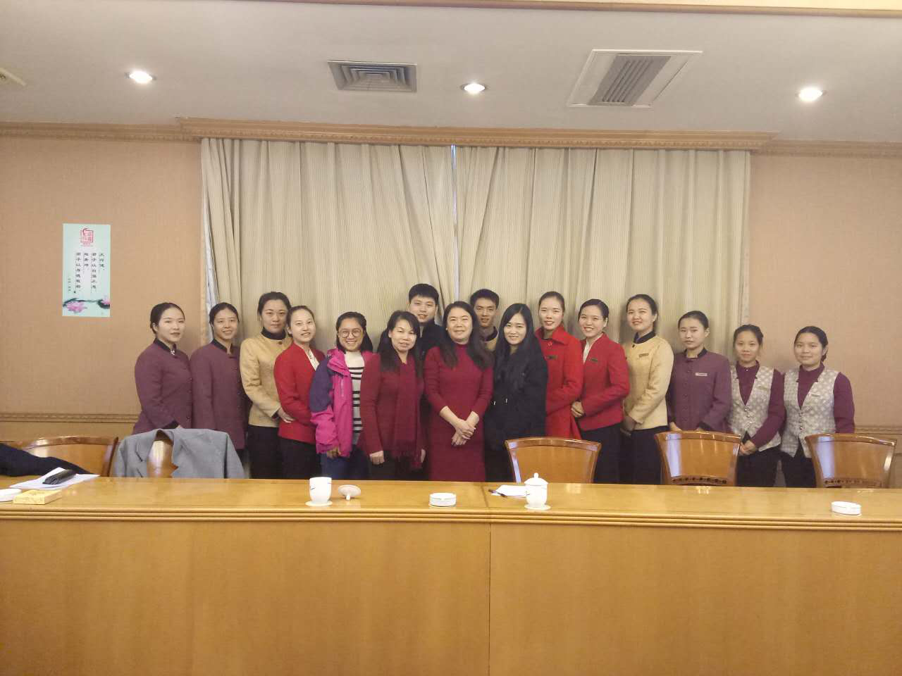 2016年12月25日,开云在线开户党委党员、纪委书记姚春梅教授、开云在线开户管理学院院长汤腊梅教授,顶着寒风细雨来到湖南宾馆,深入实习基地检查指导实习工作并看望在这里实习的商学院的学生。