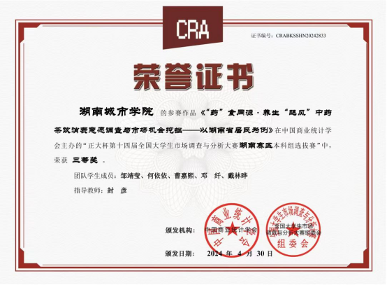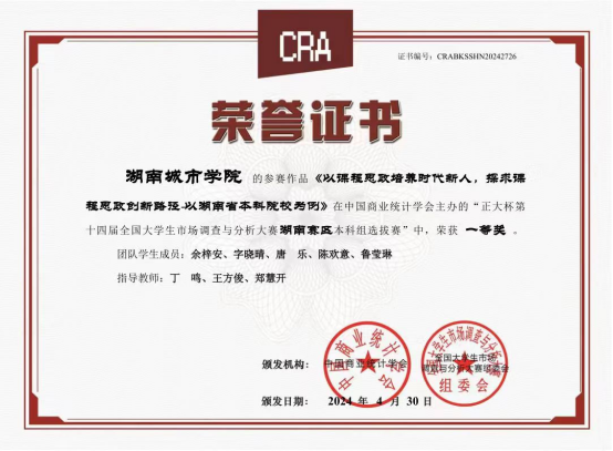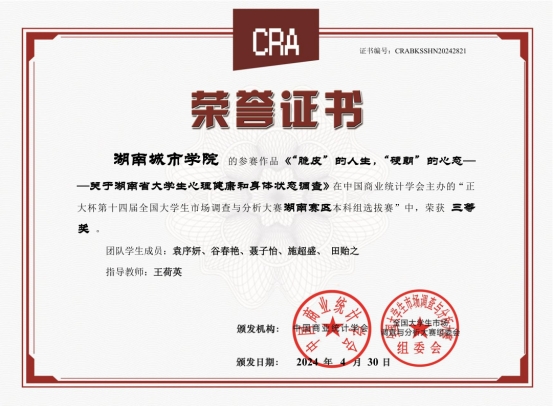 喜讯:我校学生获得“第十四届全国大学生市场调查与分析大赛”湖南省赛区若干奖项