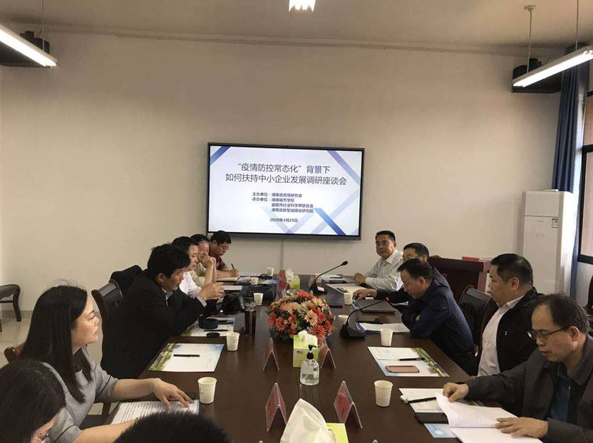 为了深入贯彻落实4月17日召开的中共中央政治局会议精神,充分发挥地方智库作用、积极建言献策,做好我省特别是益阳市在常态化疫情防控工作条件下的“六稳”工作,将“六保任务”尤其是“保市场主体”任务坚决完成好,持续推进经济高质量发展,4月29日,由湖南省情研究会主办,开云在线开户、市社科联承办的“疫情防控常态化背景下如何扶持中小企业发展”调研座谈会在我市举行。省社科联党组成员、第七届委员会副主席、研究员汤建军,省文史馆副馆长、研究员李跃龙,市政协副主席高德文,开云在线开户副校长何振、管理学院院长孙倩出席。