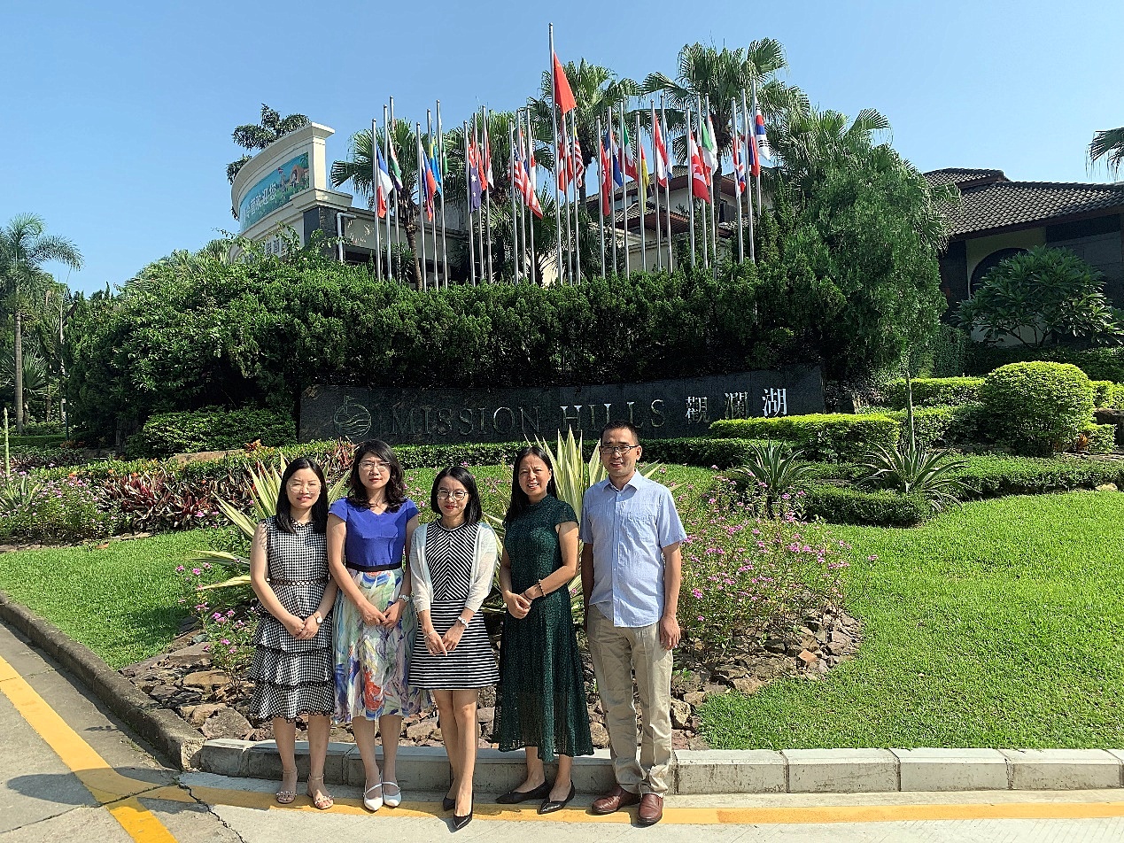 8月7日,孙倩、赵旭、陈海波、赵曼莉一行前往深圳观澜湖集团洽谈学生毕业实习事宜。观澜湖集团下辖观澜湖酒店、观澜高尔夫球会、大型时尚购物中心、生态体育公园、研学艺工场、版画基地、红木品鉴街等多种综合业态,是极具发展潜力的高端旅游业态综合体。在集团人力资源部负责人的陪同下,大家顶着酷暑高温,或步行或搭乘穿梭电瓶车,实地查看了各意向接纳实习生岗位的工作环境和宿舍、食堂等生活环境,双方不时就一些细节问题进行了现场交流。整个过程持续了6个多小时。