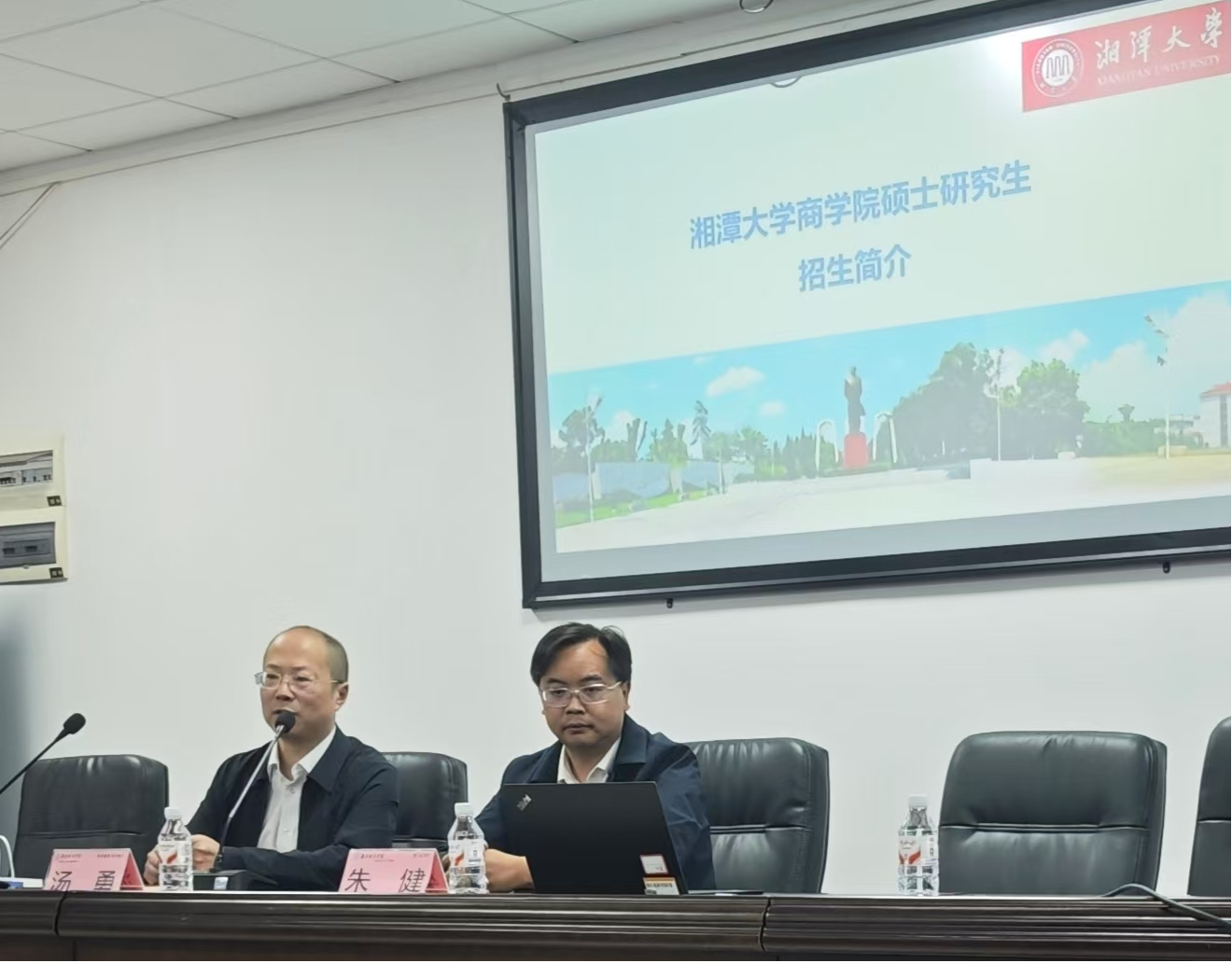 本网讯(通讯员:吕鑫雨、张胜)2025年10月17日下午,湘潭大学商学院与公共管理学院在我校管理学院504会议室联合举办考研宣讲会。现场气氛热烈,座无虚席,吸引了众多有意向考研的学子参与。