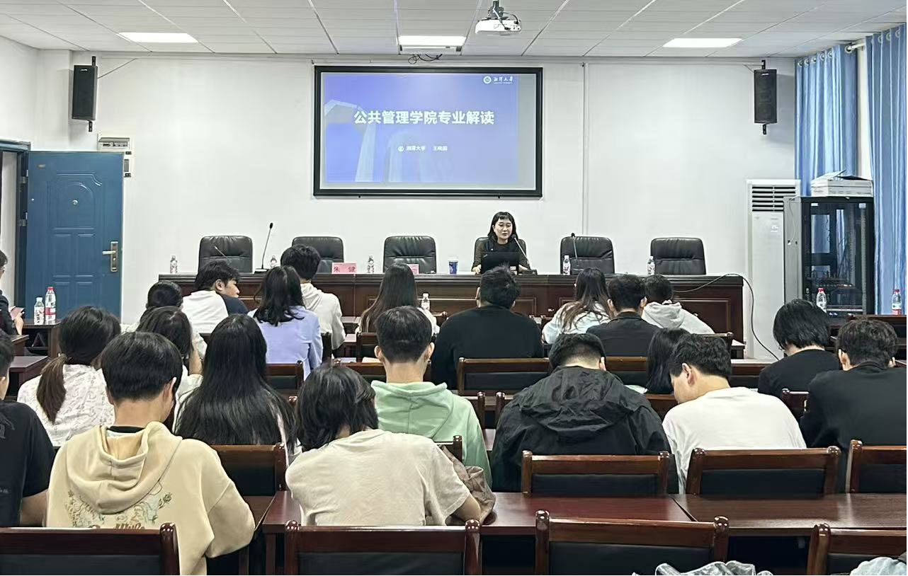 随后,公共管理学院王晓园副教授登台,针对该院的学科建设与招生政策进行解读。她从学科特色、核心课程、培养模式到毕业发展路径等多个维度展开说明,为意向报考公共服务、政策分析等相关领域的学生提供了清晰指引。