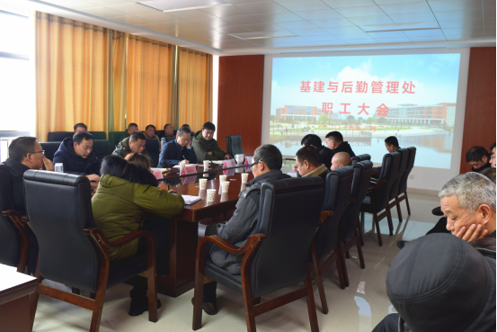 2019年1月17日下午,我处在二办公楼420会议室召开了职工大会,会议由曹友余处长主持,夏宏宇副校长出席会议并讲话,全处职工参加了会议。