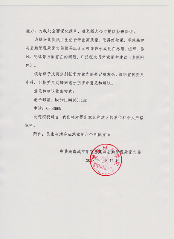 关于征求对基建与后勤管理处党支部2017年度党员领导干部民主生活会意见和建议的通知